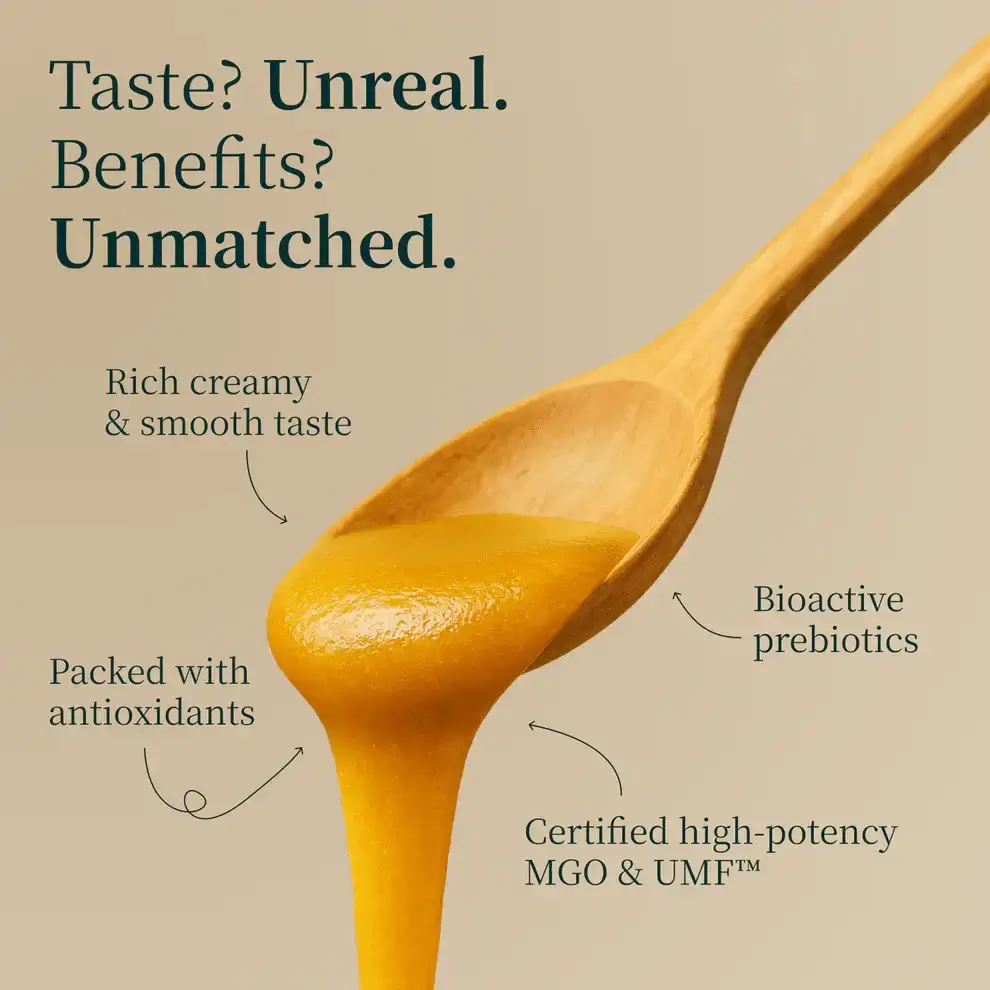 Manuka honey contains exclusive natural compounds, including MGO (Methylglyoxal) , which is responsible for its strong non-peroxide antibacterial activity.